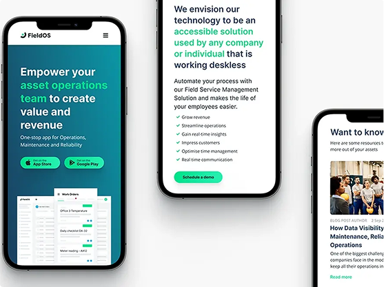 FieldOS, a top asset management platform for enterprise clients in manufacturing, energy, and utilities, asked us to refresh their logo and website. They wanted a modern, professional identity that reflected reliability and intelligence while ensuring a user-friendly site that highlights their expertise in innovative asset management.
