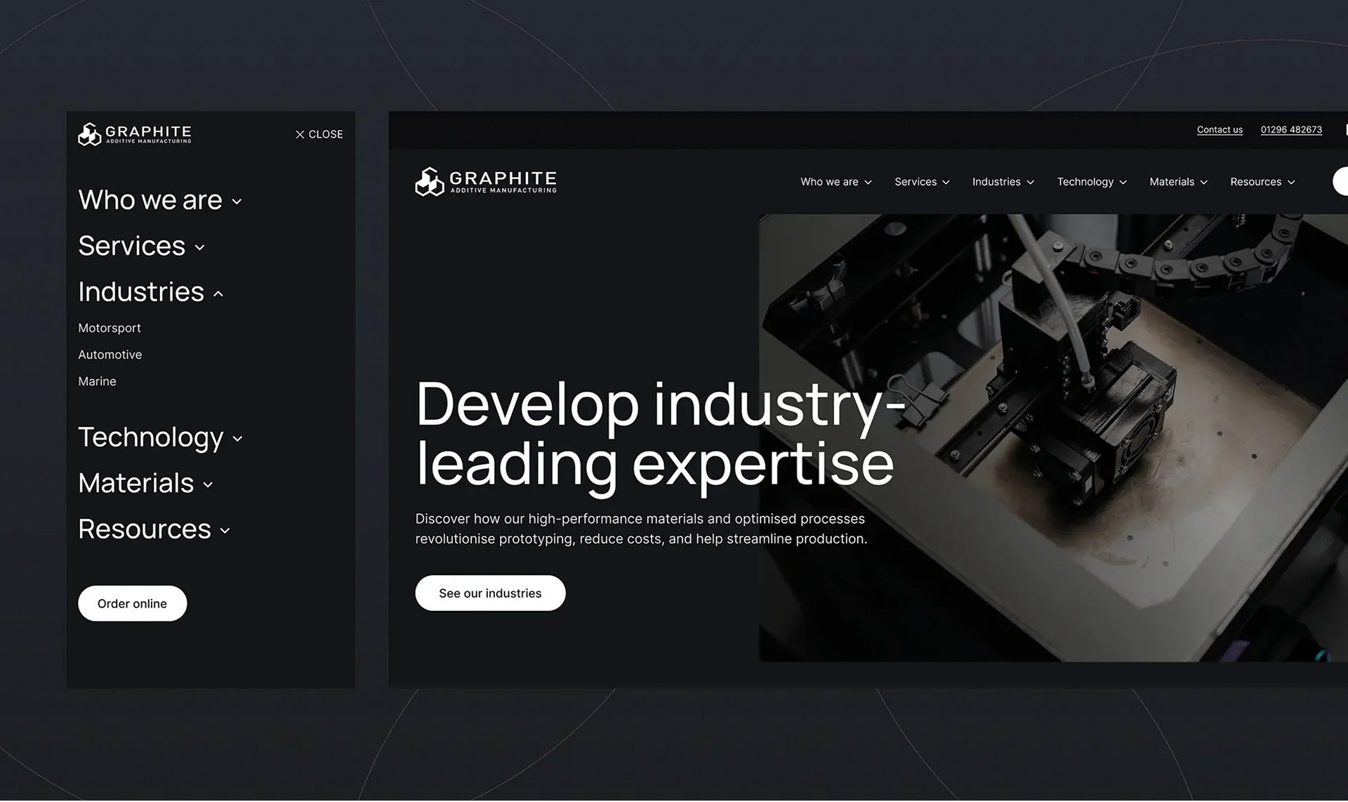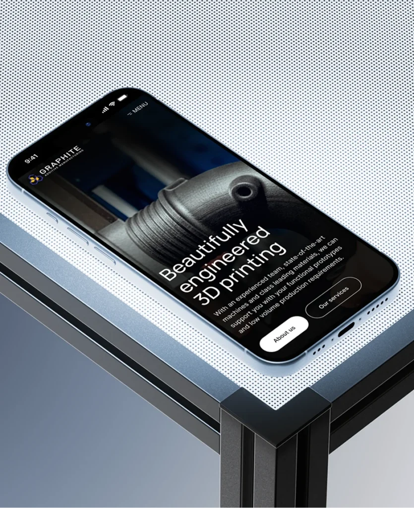 The website was redesigned to clearly present Graphite AM’s core services—consultancy, prototyping, and production—while guiding different users through tailored journeys based on their needs. Industry-specific pages were introduced to demonstrate how additive manufacturing supports sectors such as motorsport, aerospace, and marine, supported by real-world case studies that showcase the company’s impact.